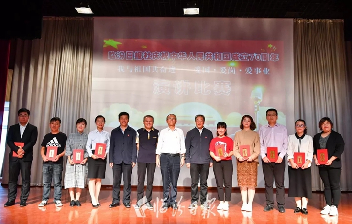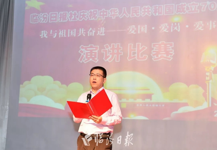 临汾新闻网讯(记者 卫红丽) 为庆祝中华人民共和国成立70周年,深入开展“不忘初心、牢记使命”主题教育,凝聚奋进新时代的强大力量,9月27日,临汾日报社举办“我与祖国共奋进——爱国·爱岗·爱事业”演讲比赛。