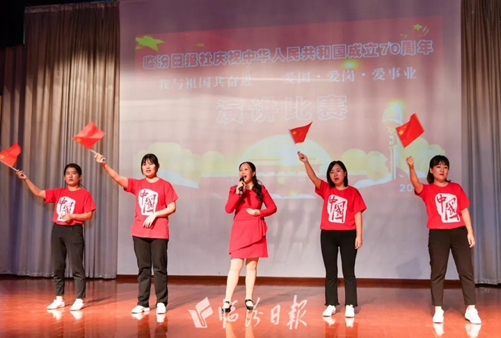 此次活动中,临汾日报社全体报人合唱了《中华人民共和国国歌》《歌唱祖国》;5位一线记者在演讲比赛中间环节即兴演唱了《今天是你的生日》。生动活泼的活动方式,激发了广大职工的爱国之情、报国之志,将更好地鼓舞大家不忘初心、牢记使命,立足本职岗位作贡献,争做新时代奋斗者。
