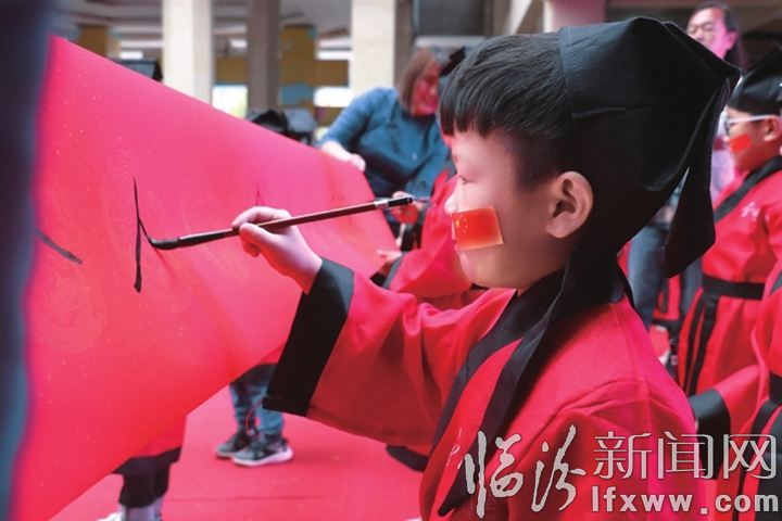 临汾新闻网讯 礼拜圣人,敬拜父母、师尊,自正衣冠,朱砂启智,击鼓鸣志,启蒙描红,诵读《大学》,蒙师赠物……10月5日上午,一场别开生面的“蒙童开笔礼”在临汾新百汇南广场舞台举行,临风堂首届百城万卷绘中华活动同期进行。