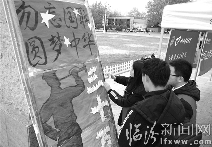临汾新闻网讯 为增强广大师生的忧患意识和国防意识,激发大家的爱国热情,12月12日,山西师范大学社会学与法学学院青年志愿者协会在该校巨人广场举办了“勿忘国耻、圆梦中华”主题教育活动。