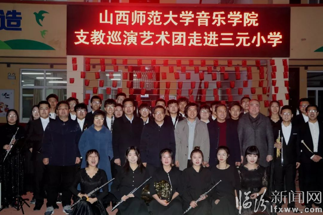 临汾新闻网讯(记者 郑 轲)12月11日,山西师范大学音乐学院支教巡演艺术团到尧都区三元小学进行支教慰问演出。山西师范大学管乐团以乐曲串烧的形式给三元小学的学生及家长、老师们带来了一场视听盛宴。
