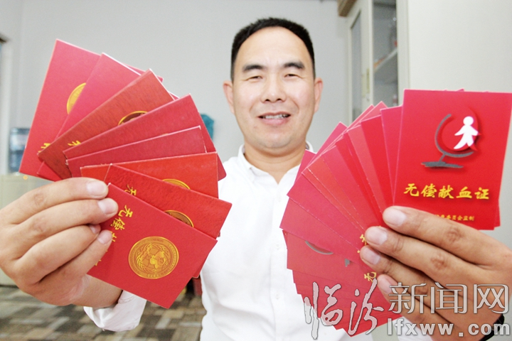 “血液可以再生,生命不能重来。当有人生命危在旦夕时,我所献的血,可以让他重燃生命之火……”43岁的贺国照坚持献血20年,献血小板58个治疗量,献全血量超过10000毫升,相当于两个成年人全身的血量之和。他先后获得全国无偿献血奉献奖金奖、银奖,入选2019年“爱满人间 红动中国”全国无偿献血群英谱,山西省仅两人。