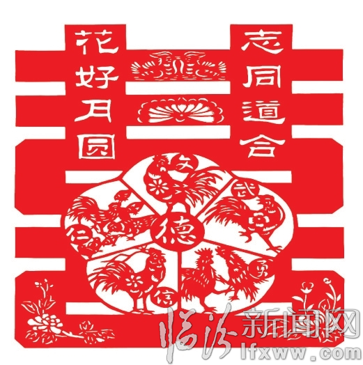 “一个月前,同事跟我说他的儿子要结婚了,想让我创作几幅囍字……”接到任务后,王铁锁立马忙活起来,经过细致构思,一套融合两位新人生肖、集吉祥寓意为一体的囍字剪纸作品新鲜出炉了。“女方属鸡,男方属狗,我创作的这套囍字主要是围绕二人的生肖为主脉络的。”欣赏着囍字佳作,除了“花好月圆、志同道合;永结同心、白头偕老”隶书字样外,象征夫妻相亲相爱、白头偕老的鸳鸯、白头翁,寓意吉祥富贵的牡丹花、家有喜事的喜鹊登梅等,惟妙惟肖的图案结合都给人以美的享受。更为巧妙的是,王铁锁在生肖鸡、狗上做的“一番文章”更是浑然天成。