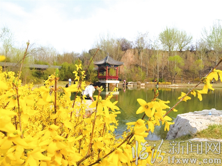临汾新闻网讯 天蓝水碧,鸟语花香,绿意盎然。春色渐浓,久居家中的市民在公园享受久违的春意。