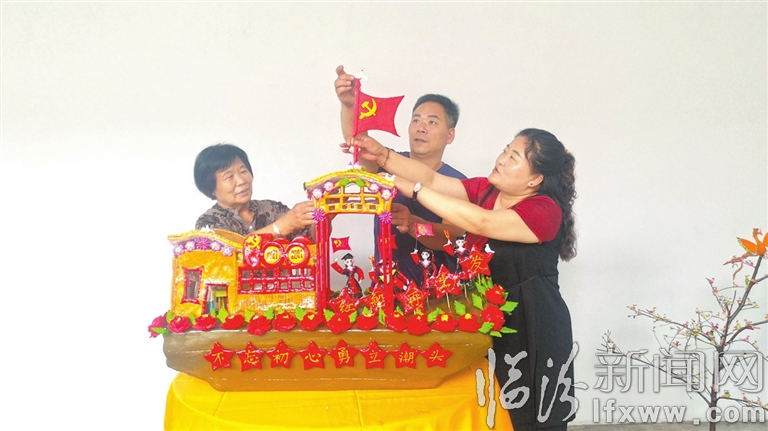 这件面塑作品《红船精神》是由襄汾县古城镇站李村的市级非遗项目“太平面塑”代表性传承人王文娟及其丈夫白志学、母亲孟玉珍历时一个月,共同精心制作完成。