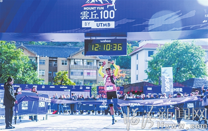 临汾新闻网讯 10月20日至22日,乡宁县举办了2023云丘山越野赛by UTMB®,共有3500余名国内外选手参赛。图为10月21日,参赛选手奋力冲过终点。记者 闫锐鹏 摄
