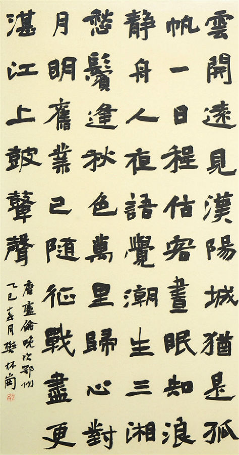 樊三林、冯平章、张钧三位作者,情钟于楷,学有大成。其作品浑穆大气,令人肃然起敬。三林于北魏墓志、摩崖造像等用功最甚,兼容汉隶、八分,点画峻厚、方圆兼备、结字险崛,趣味无穷。平章喜颜写颜,一招鲜,吃遍天,正如陆游所云:学诗当学陶,学书当学颜。以颜体之厚重,融入何绍基之灵动,恰如其分地展现新时代之精神风貌,雍容典雅、气象正大。张钧创作则以中楷为基,辅之大楷、小楷,应时多变,尤其是小楷作品,承钟繇、王宠一脉,可谓精雕细琢、惟妙惟肖。