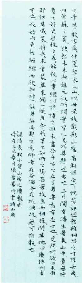 张蕾蕾、李文秦、李恒三位女性作者,字如其人,清秀端庄、温婉儒雅,自然与精美绝伦的小楷紧密联系在一起。其大尺幅小楷作品,让观者叹为观止、不忍移步、拍案叫绝。张蕾蕾、李文秦承钟繇、二王、赵子昂、文征明之正脉,源头汲水,悟其精髓。李恒则以篆隶为主,隶宗礼器,旁参乙瑛、曹全、鲜于璜等,华丽典雅,成自家风貌;篆书得力于汉《袁安碑》《袁敞碑》,兼习吴让之,华润俏丽而不失苍劲。细细品鉴三位女作者小字作品,宛如一缕春风,轻轻拂过心田,不禁陶醉其中。几百字、几千字,洋洋大观、气韵通畅、入木三分,唯好文章与好书法不可辜负。正如张蕾蕾所言,“书法是我感知世界的最佳方式,坐下来,凝好神,提起笔……仿佛进入仙境也”。有幸观李文秦微楷作品(每平方厘米4个字以上),在一张名片上可写般若波罗蜜多心经全文,字字珠玑、一丝不苟。若无火眼金睛,怎可观其形、赏其韵、得其神?