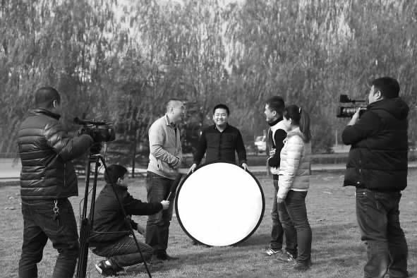 尉伟眼下正经营着一家广告公司,拍摄器材不缺,前期的筹划和后期的剪辑对他的团队而言,也不算难事,但演员不够给力让他伤透了脑筋。“主要演员大多是我们的朋友、团队成员、公司员工等,没有经过专业培训,表演稍显做作,对戏的时候频频笑场。男演员还好一些,能很快进入角色。女演员不愿扮丑,表演始终放不开。”在拍摄的过程中,大家齐心协力,身兼数职,在干好本职的导演、编剧、摄像之外,需要什么干什么,缺演员就亲自上阵。凭着满腔热血,主创团队迈出了艰难的第一步。