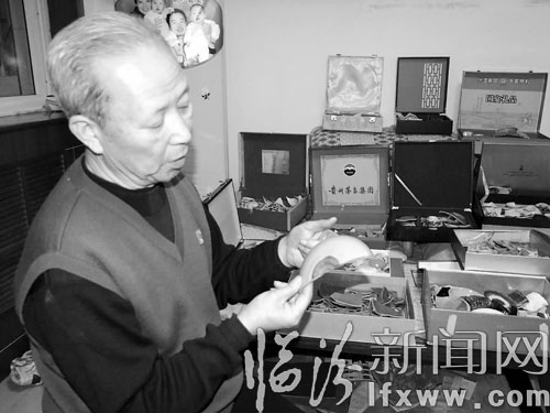 葛培忠师傅是一名收藏和研究古瓷片的爱好者,家住市区平阳南街警苑小区。从开始给别人免费捡瓷片,到不顾家人反对给自己捡瓷片,16年间,他收集瓷片20余箱,精品瓷片20余盒,大约7000余片。在这些瓷片当中,最让他热心关注并深入研究的是临汾古瓷片,而临汾古瓷片中最让他爱不释手的是临汾窑钧瓷。