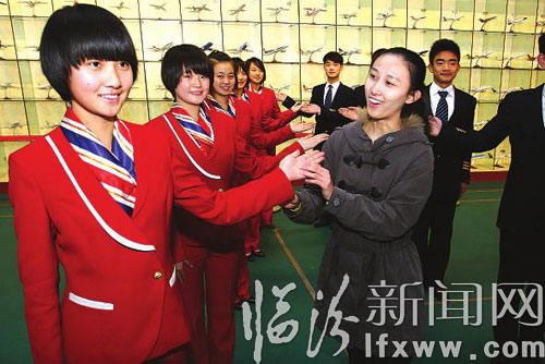 目前,山西师范大学实验中学空乘专业共有50名学员。(记者 赵文家 苏亚兵 摄影报道)