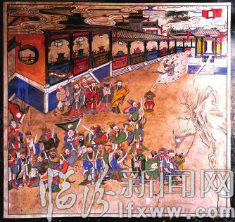 有“群仙庆寿”百官朝拜”“苏武牧羊”麻姑贺寿”仙女献花”私塾与顽童”等精美的壁画,还有写着“牧童坐牛背,逍遥吹玉笛。玉兔还原处,和缓何用急”诗歌的放牧图,再现了当时人们的向往。
