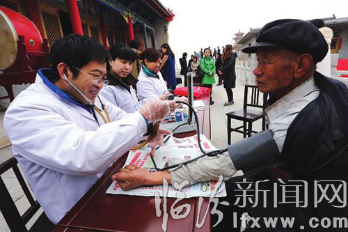 临汾晚报学雷锋小分队联合医护人员为村民送照片送健康