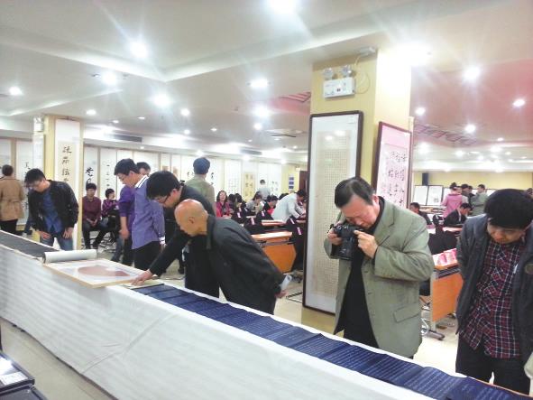 颁奖结束了,书法爱好者们还在书法展区里流连忘返,边欣赏边交流切磋书法技艺。“写漂漂亮亮中国字,做堂堂正正中国人”在我市推广、普及已见成效,硬笔书法进校园、进机关、进厂矿、进企业、进社区,有着广泛的发展空间,传承中华传统文化的潜力巨大。