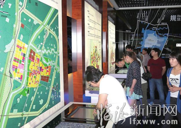 城市规划展区的市域城镇体系规划壁挂图吸引了参观者的注意。从这张壁挂图上可以直观地看到,集公路、铁路、航空运输方式于一体的交通格局,构筑起现代立体化大交通网络;市域城镇空间结构形成“一带两廊四通道”。
