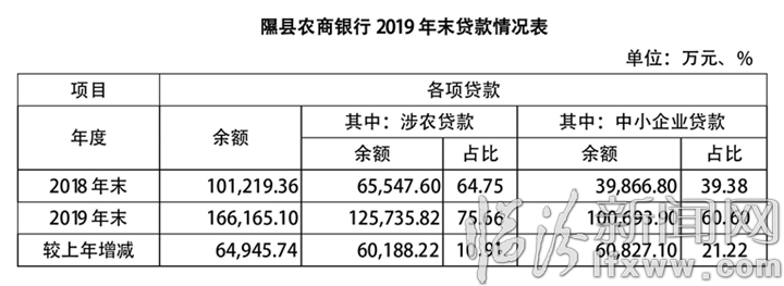 在资产中,年末各项贷款余额166,165.10万元,较年初增加64,945.74万元,增幅64.16%,存贷比例72.81%。其中:涉农贷款125,735.82万元,占贷款总额的75.67%;中小企业贷款100,693.90万元,占贷款总额的60.60%。全年累计发放贷款272,006.12万元,同比增加109,475.92万元,累计收回贷款207,060.39万元,同比增加65,860.51万元。