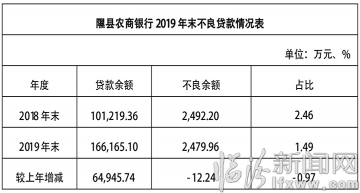 2019年末,按五级分类口径不良贷款余额为2,479.96万元,占比1.49%,不良贷款余额比年初下降12.24万元,不良占比较年初下降0.97个百分点。其中:次级类贷款1,130.22万元,比年初下降269.78万元;可疑类贷款915.20万元,比年初增加340.24万元;损失类贷款434.54万元,比年初下降82.70万元。