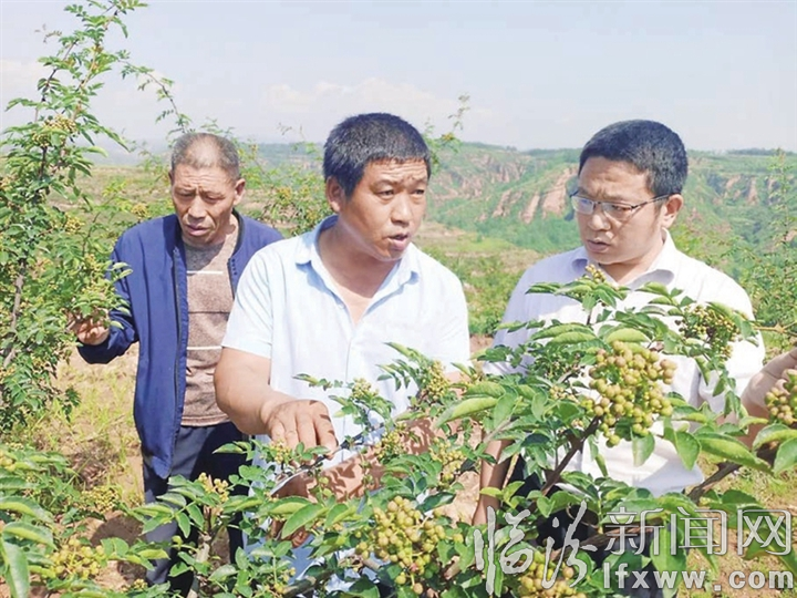 临汾新闻网讯 近年来,翼城县浇底乡裴家垣村大力发展特色花椒种植产业,增加了农民收入。翼城联社浇底信用社工作人员及时跟进,为花椒产业提供信贷资金支持。图为工作人员在向椒农了解花椒生长情况。