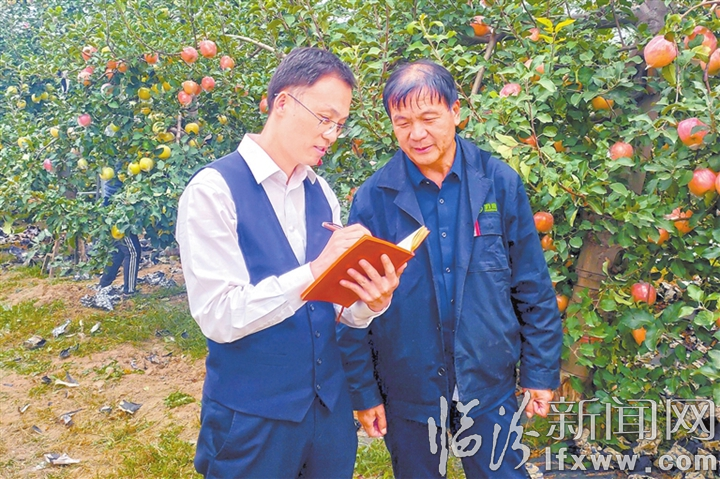 临汾新闻网讯 近日,翼城联社辛安信用社抓住苹果收获时机,走村入户,深入田间地头走访辖内的苹果种植户,宣传普惠金融知识、反假币知识、反洗钱知识等。同时介绍信用社的存款、贷款、一卡四平台等业务。图为工作人员向苹果种植户了解农业生产情况。