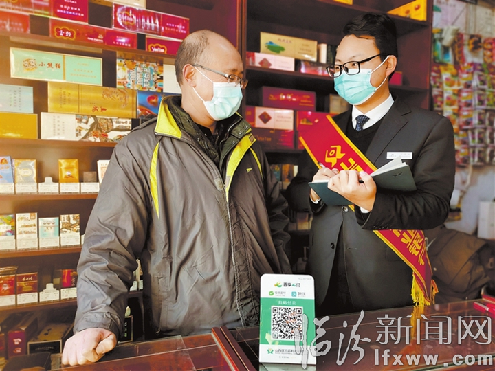 临汾新闻网讯 春节将至,为更好地服务客户,侯马农商银行浍滨分理处工作人员走街串巷,回访老客户,走访新客户,为客户送去节日的问候。图为工作人员向客户征求意见。