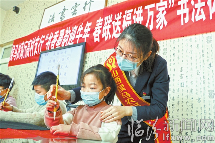 临汾新闻网讯 为大力弘扬中华优秀传统文化,营造新春祥和热烈的氛围,近日,侯马农商银行高村支行举办亲子书法兴趣活动,邀请客户与其子女开展“书香墨韵迎牛年、春联送福进万家”书法体验活动。