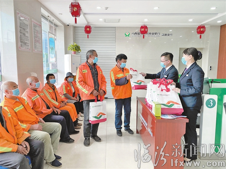 临汾新闻网讯 5月1日,侯马农商行组织各网点举办“庆五一、送温暖”活动,打造多元化服务品牌——“劳动爱心休息区”,为辖内社区街道的环卫工人、快递员、外卖员等送上温暖的节日祝福。