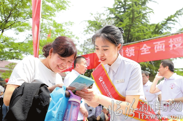 临汾新闻网讯 近日,襄汾农商银行第三党支部与古城镇关村党支部签约“党建共建庆百年 我为群众办实事”战略合作协议,旨在通过推进全面授信工作,加快乡村振兴步伐。图为银行工作人员向群众介绍全面授信的益处。