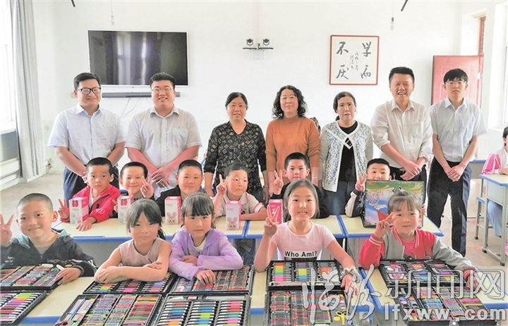 临汾新闻网讯 为庆祝“六一”国际儿童节,吉县农商银行工会带着对农村儿童的关爱,组织开展了慰问帮扶活动。图为工作人员为孩子们送上节日祝福,捐赠了篮球、羽毛球、水彩笔、笔记本等文体器材和学习用具。