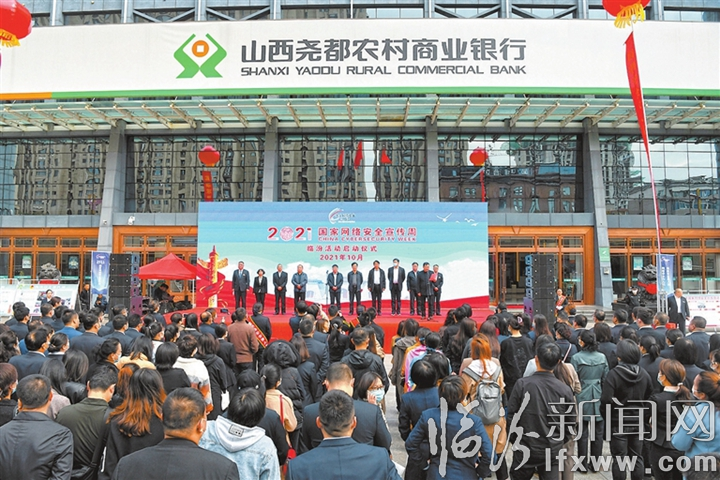 临汾新闻网讯 10月11日,2021年国家网络安全宣传周临汾活动启动仪式在尧都农商银行总行举行。活动现场参会人员共同观看了《营造清朗网络空间 护航临汾高质量发展》宣传片、网络微视频大赛优秀作品展及宣传展板,并现场为市民群众发放宣传资料、讲解网络安全知识。