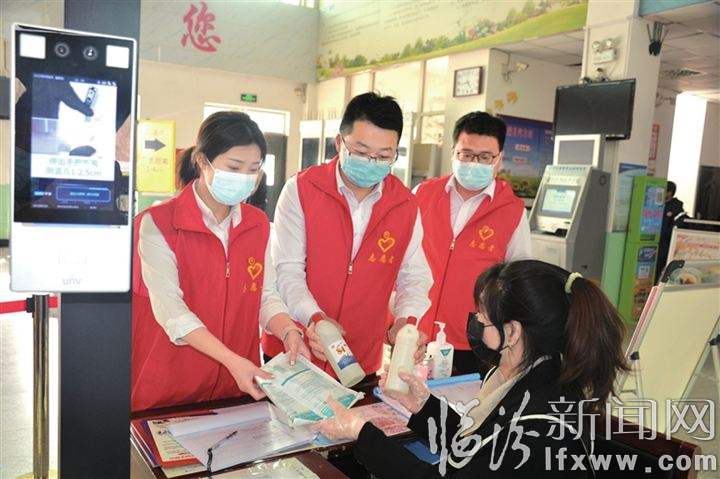 临汾新闻网讯 在五一国际劳动节期间,蒲县农商行组织志愿服务队向坚守在岗位的劳动者送上消毒液、口罩等防疫物资,并向他们送上节日问候。图为志愿者向汽车站值班人员送上防疫物资。