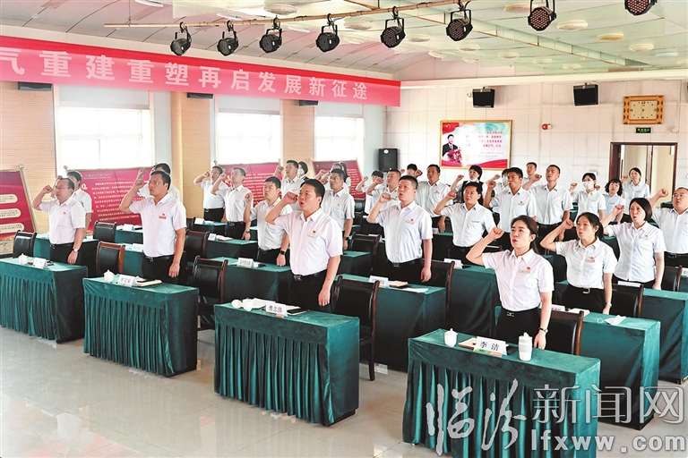 临汾新闻网讯“我是一名光荣的山西农信人,我将忠诚于党的事业,严格遵守党的廉政纪律……”近日,翼城农商行党委组织党员领导干部举行清廉宣言宣誓活动,引导干部员工筑牢思想道德防线,为廉洁从业奠定坚实基础,进一步推动全行清廉文化建设走深走实。图为宣誓现场。