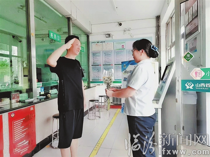 临汾新闻网讯 八一建军节之际,安泽农商行向解放军指战员、武警官兵、转业复员退役军人等推出了“致敬八一 感恩有你”活动,各营业网点对前来办理业务的解放军指战员、武警官兵、转业复员退役军人等送上鲜花和祝福。