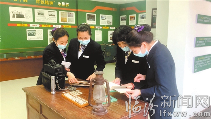 临汾新闻网讯 为进一步培养员工爱岗敬业意识、弘扬农信背包精神,近日,曲沃农商行工会组织青年员工开展了参观行史馆的 “寻根之旅”,让青年员工从老一辈农信人身上汲取前进力量、感悟使命担当、激发爱岗热情。图为青年员工参观老农信人用过的物品。