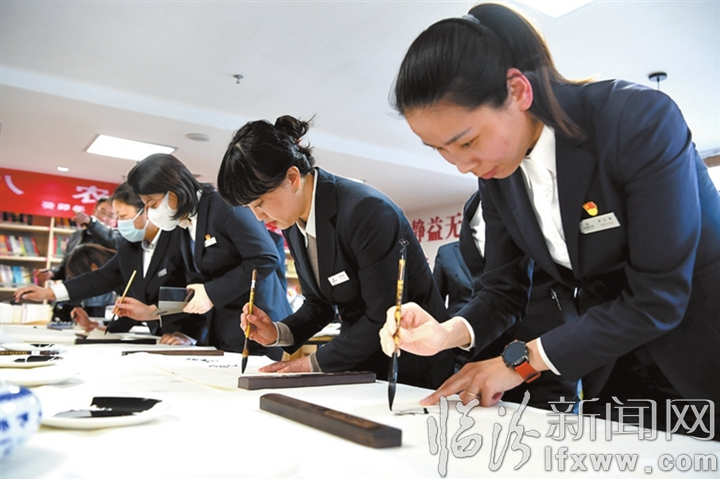 临汾新闻网讯 为丰富职工文化生活,尧都农商行工会近日组织广大女职工开展了学习书法活动。活动现场,书法老师现场指导并教授大家写作,大家会心凝神、认真写作,感受着中华文化的博大精深。
