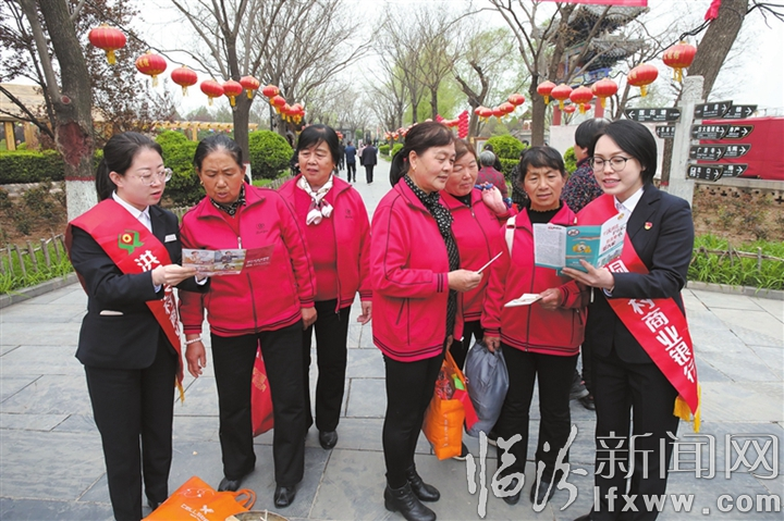 临汾新闻网讯 在洪洞大槐树文化节期间,洪洞农商行在活动现场设立金融服务台,悬挂宣传条幅,发放宣传手册,为群众普及鉴别假币方法、金融理财、支付结算、电信诈骗、防范非法集资等金融常识。图为工作人员向群众介绍农商行金融产品。