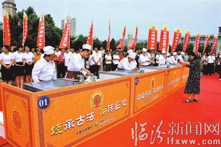 临汾新闻网讯 近日,由襄汾农商行独家冠名赞助的2023襄汾县“农商银行杯”烧饼创业创新技能大赛开赛。为助力大赛,襄汾农商行组织方阵队为选手们加油呐喊助威,向烧饼经营者推荐金融产品提供资金支持。图为大赛现场。