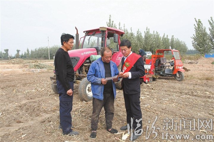 临汾新闻网讯 当前正是秋收秋种时节,洪洞农商行组织员工积极深入田间地头,向农民群众送上金融服务,并征求群众对农商行工作的意见建议,把金融服务做到群众心里。图为该行员工在田间向农机经营户介绍适合的金融产品。