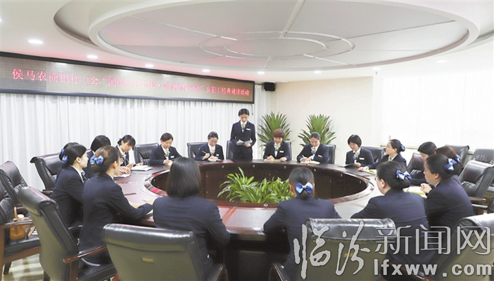 临汾新闻网讯 为提高职工的政治素养和文化修养、筑牢思想根基,侯马农商行工会近日组织女职工开展了以“阅读经典好书,争当时代工匠”为主题的经典诵读活动,带领职工走进书的世界,感受阅读的乐趣和文字的力量。图为女职工分享读后感受。