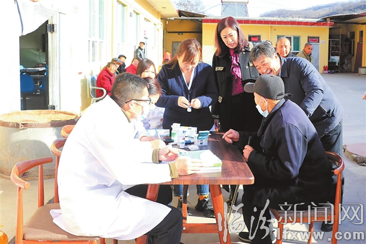 临汾新闻网讯 近日,蒲县农商行工会联合医护人员一起前往养老院开展志愿服务活动,帮老人打扫环境卫生、关心老人的日常生活起居,并为老人进行健康义诊,普及冬季起居调护、中医药调养、运动调整等养生保健知识。图为义诊现场。