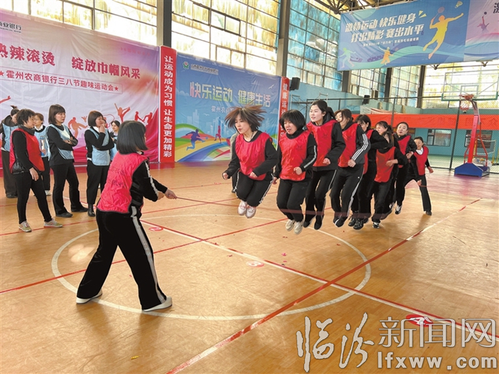 临汾新闻网讯“三八”国际妇女节来临之际,霍州农商行工会为提升企业文化内涵,让员工真正在运动中享受快乐、释放压力,为全行发展注入激情和力量,组织举办了“拼出热辣滚烫 绽放巾帼风采”趣味运动会,来自全行的70余名女职工参加了各项比赛。图为跳绳比赛现场。
