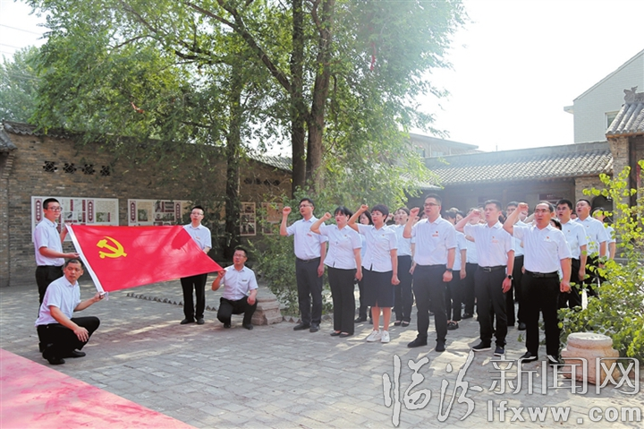 临汾新闻网讯 近日,古县农商行党委组织党员干部、青年员工50余人前往尧都区秦家大院开展主题党日活动,引导大家从红色历史中感悟革命精神,锤炼党性。图为全体人员重温入党誓词。