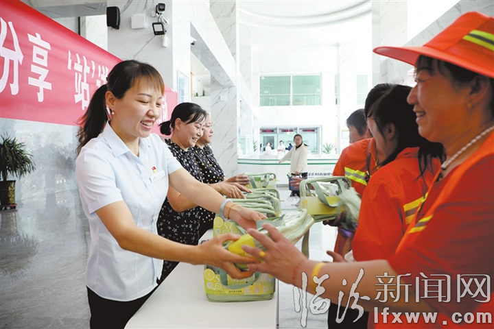 临汾新闻网讯 近日,安泽农商行工会联合县总工会开展了“送清凉”活动。工会送的消暑物品,不仅给户外劳动者在炎炎夏日提供了贴心便利的服务,而且让他们充分感受到了工会组织的温馨。图为正在赠送消暑物品。