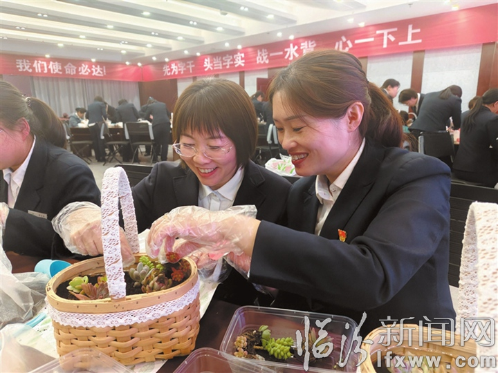 临汾新闻网讯 为丰富员工文化生活,安泽农商银行近日举办多肉花篮DIY活动,大家在老师的带领下学习了多肉的习性特点、搭配要领、操作手法、使用工具等知识,并动手制作自己的花篮作品,享受美好时光。图为制作现场。