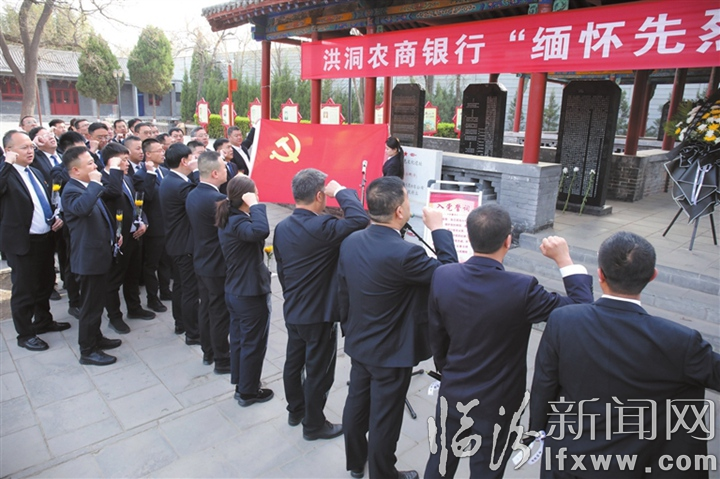 临汾新闻网讯 清明节期间,全市各农商银行积极开展缅怀革命先烈文明祭扫活动,激励全体员工继承革命遗志、发扬光荣传统,为农商银行高质量发展注入强大的精神动力。图为洪洞农商银行在大槐树革命烈士纪念亭举行“缅怀先烈 秉志前行”主题党日活动。