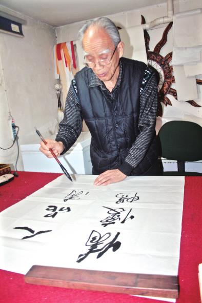 (图为李卯生在书房挥毫泼墨。)本报记者 刘晚 文/图