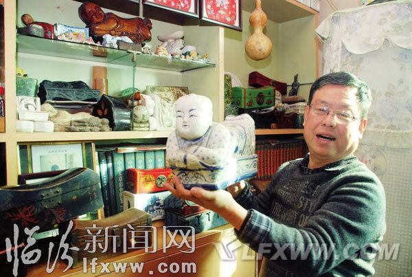 图为李北北向记者展示他的收藏品。记者 李自强 摄