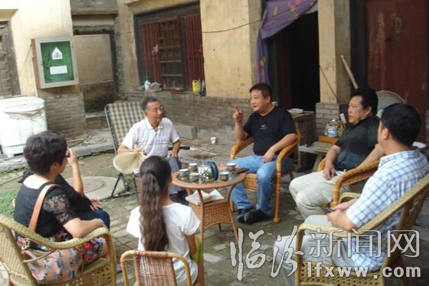陶富海(左二)为北京来的探访者讲解丁村历史