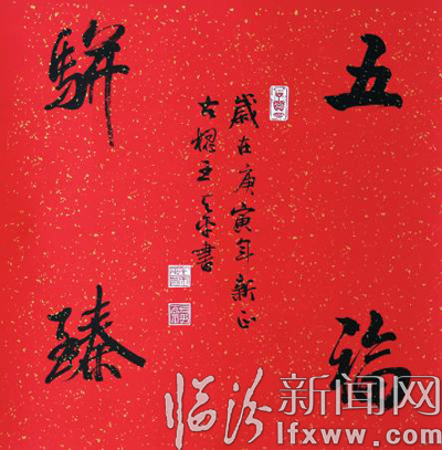 1962年,沈阳少年宫举办书法临帖展,没想到他临摹柳公权的作品获了奖,捧回了烫金字奖状,足令他高兴了好些日子。那年,他十岁。后来到长江岸边当了雷达兵。在兵营,他的字常常受到首长的夸赞,经常在多种宣传活动中“露两手”,成了部队里有出息的“名人”。上世纪80年代初,随着工作环境和职务的变化,与地方的书画界名家学习和切磋机会多了,他开始回过头来以古为师,潜心溯源,正式临帖。这一写就是30余年。期间,常有书作参加各类展事,曾代表临汾市书协赴抚顺市、南通市等地进行艺术交流。也曾应邀为临汾尧庙五凤楼、华门、尧陵、秦蜀路牌楼、洪洞县兴唐寺、九龙山等风景园林以及抚顺市碑林书写匾额、楹联。书法作品发表于《书法》《厦门航空》杂志,《书法报》专版介绍他的书法成就,中国文联出版的《艺术之巅》画册专题刊载。他的书法重传统,多创新,有功力。创新源于传统的延续和求新求变的当代意识,功力来自求知欲望和执著的艺术追求。