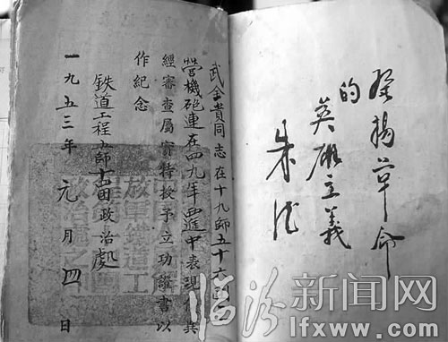 太原解放后,部队开始西进,部队跟随彭德怀元帅到甘肃,克天水、攻甘固县城,一路都是追击战,敌人那真是闻风丧胆、闻讯而逃。在西进的征途中,由于表现突出,自己还荣立了战功,由于行军、征战,立功证书不慎丢失,1953所在部队还给他补发了立功证书。