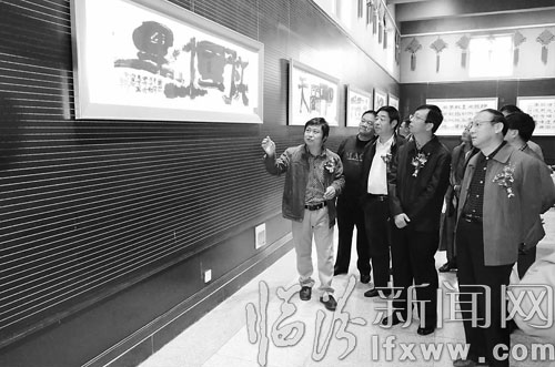 临汾新闻网讯(记者 郭秀婷 祁欣)“毅然弃商,问道求技。三上京都,矢志不渝。师从正脉,书画齐举。”10月16日,大美临汾”亢金马书法展在古城公园开展。